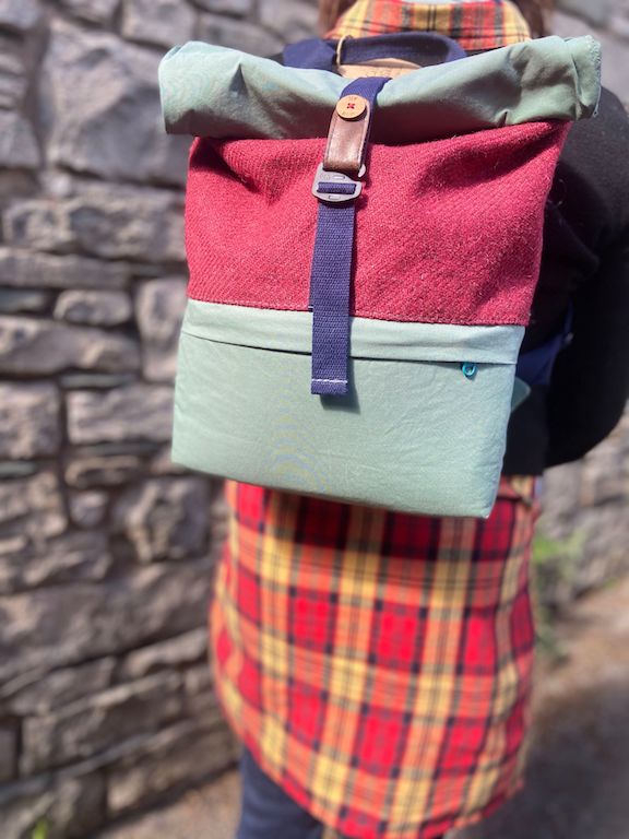 The Rucksack is a practical roll top rucksack style bag, made by Sophie Wilson of SEW Design, using our Herdwick fabrics and dry Oilskin fabric from Merchant and Mills. It is made to order, so please allow 4 weeks for delivery. SEW Design produce beautifully hand crafted knitted and upholstery products in the heart of the Lake District.